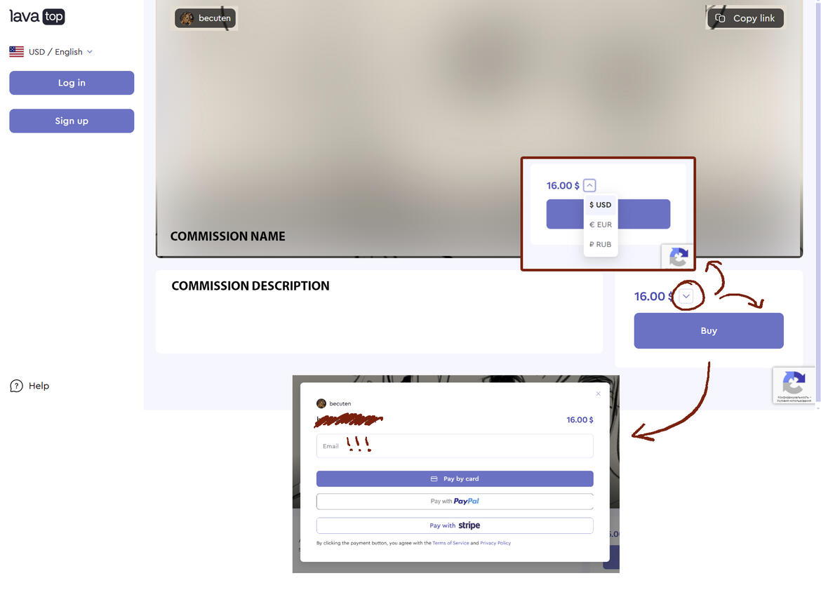 After we agree on a final price for your commission, I will create a personal link for you with the description and set price.